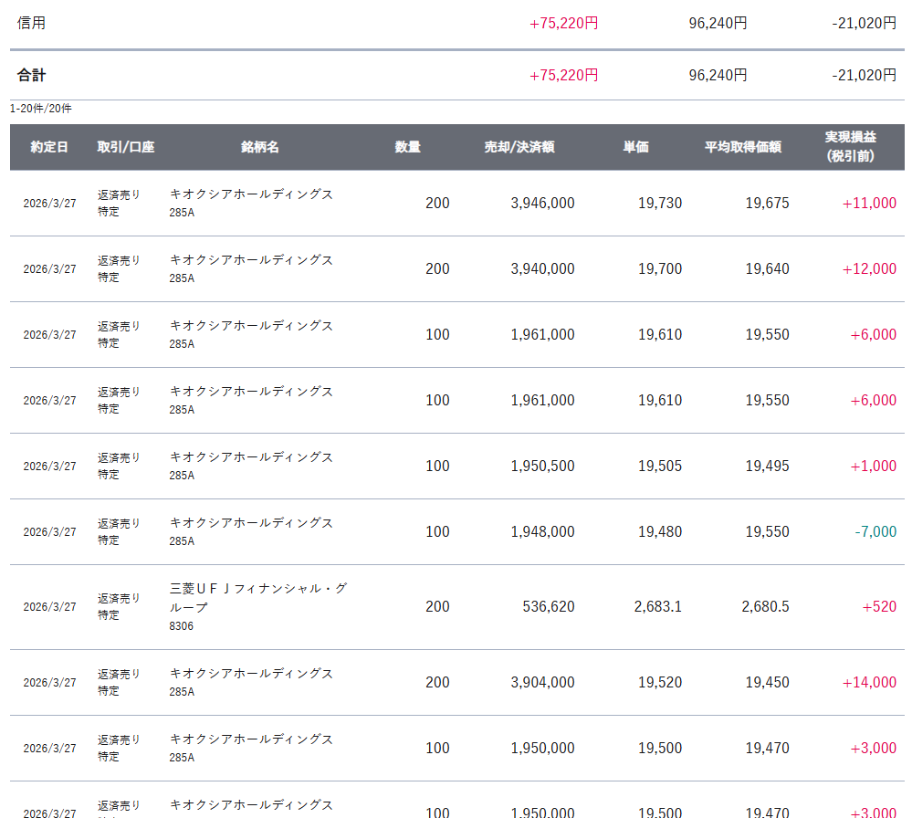 デイトレ|キオクシアのIFD +75,220円