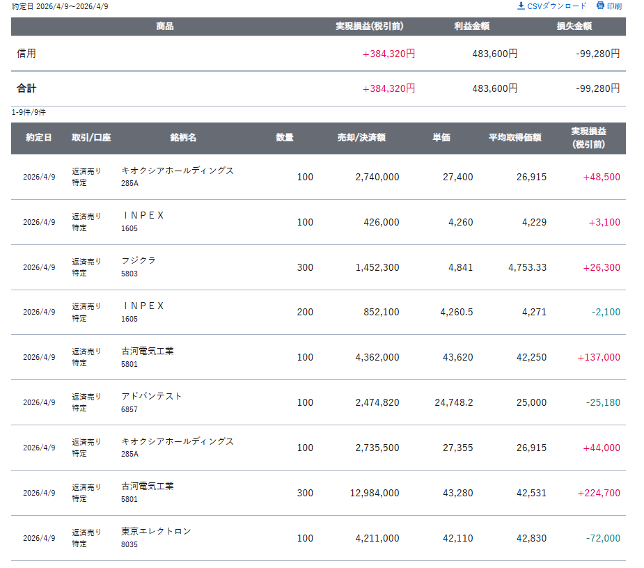 デイトレ|寄り付き12分・リバウンド取りで +384,320円