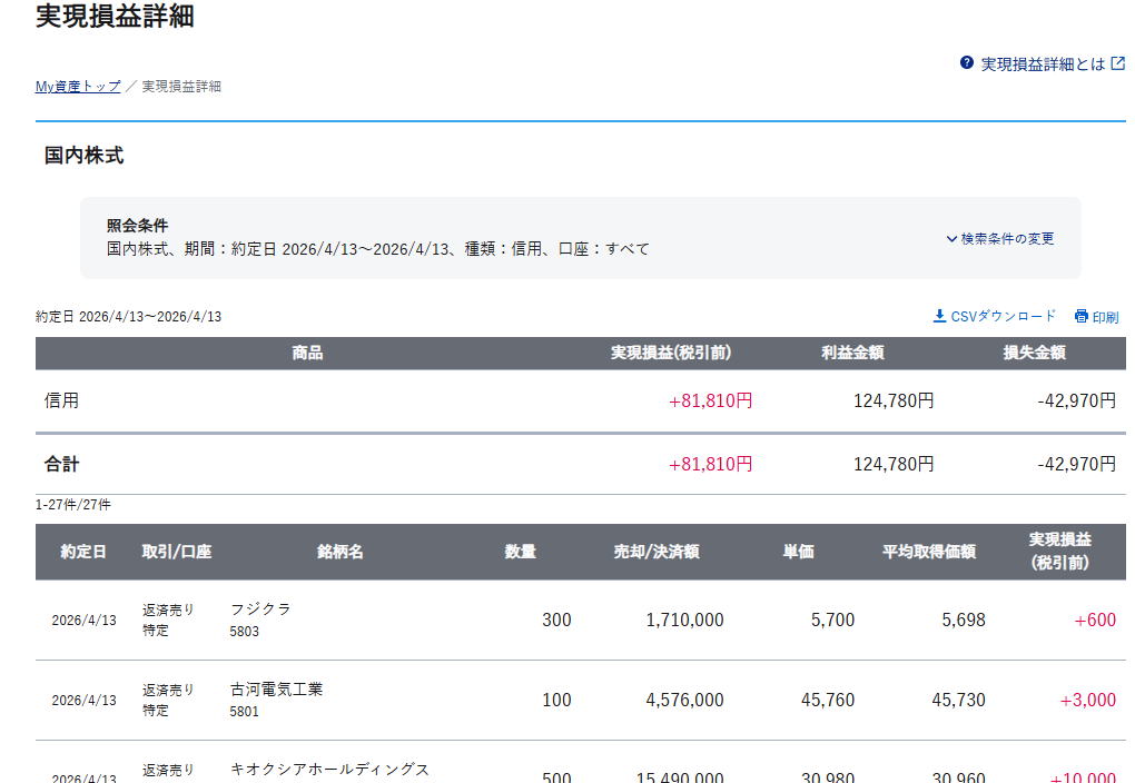 デイトレ|古河電工とスィング仕込み +453,470円