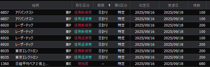 寄り付き直前に半導体関連の動向をチェックしただけでデイトレ開始。