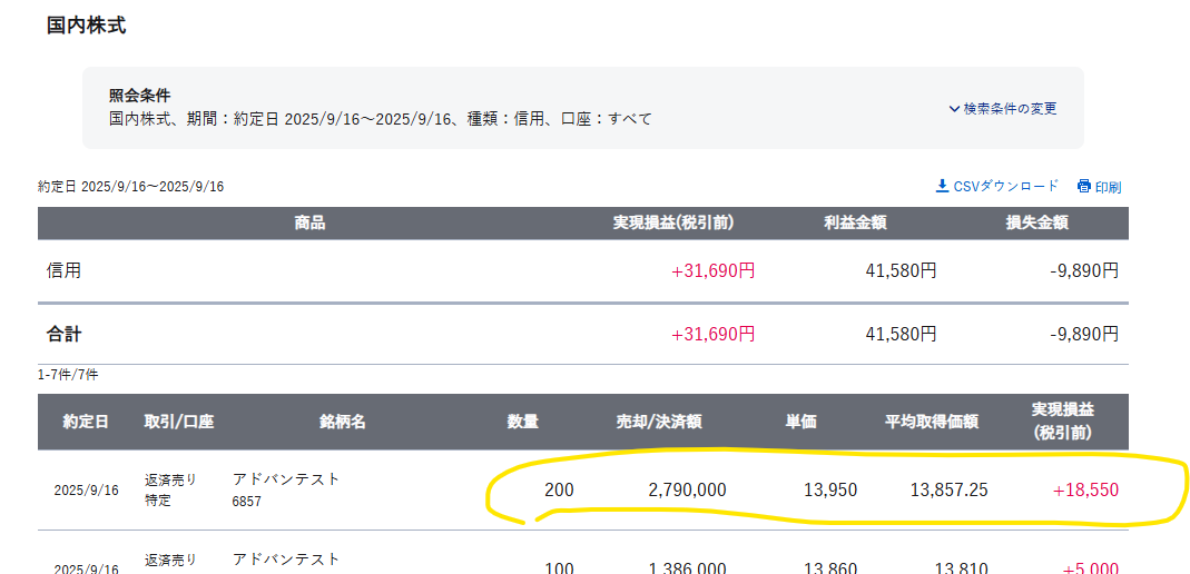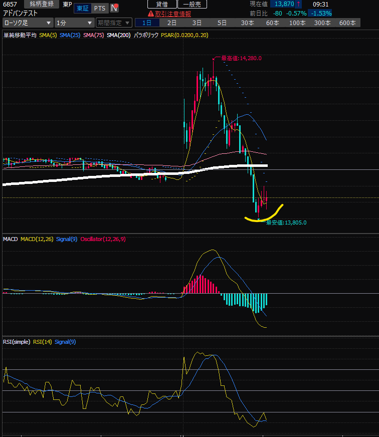 追記:アドバンテスト 13,950円で約定、+18,550円の利益でした。