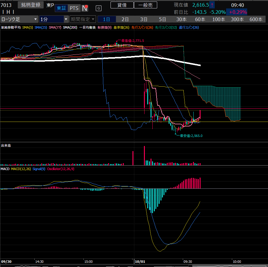 お疲れ様です。もふもふです。今日は9時にスタンバイできず、着席したのが9時3分頃でした。IHIが寄っていなくて、地政学的リスク(ウクライナの原発?)がradicoから流れてきていたので、入ってみたら失敗しました。