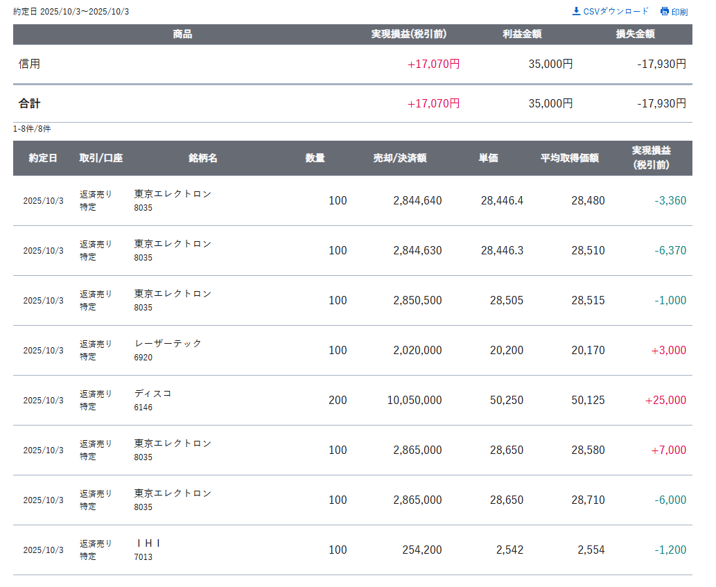 息子に、まだ10/6だけど、デイトレの実益があんたの給料超えてるで。と伝えたら、