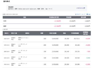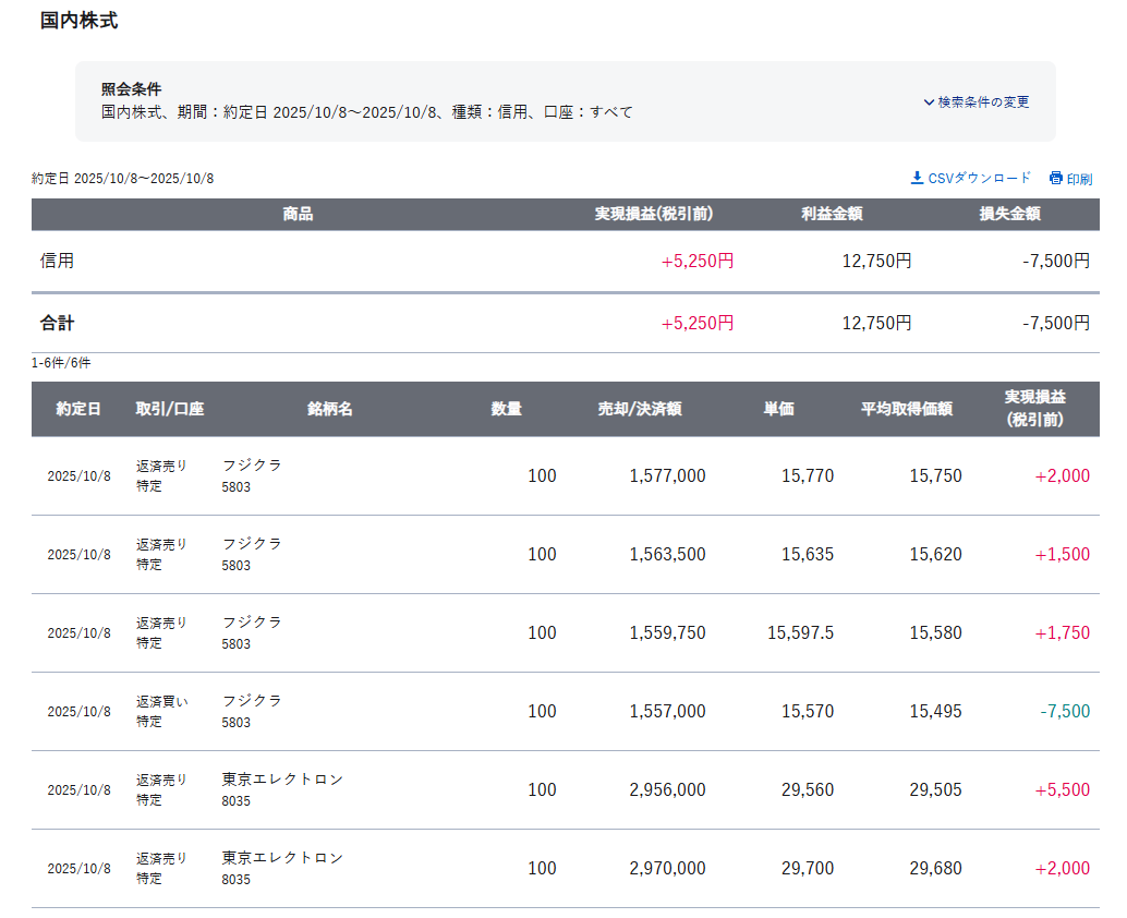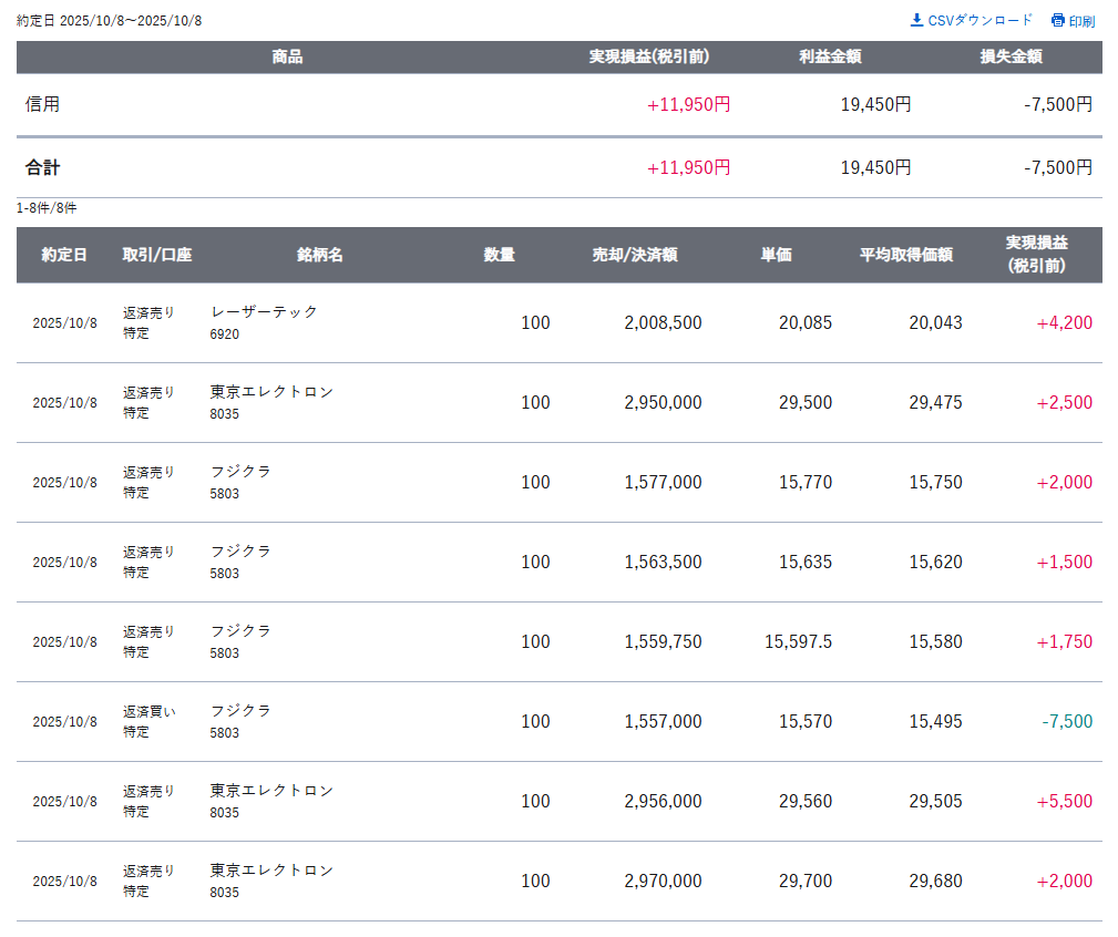 全体的に半導体関連株を中心に、急激に上げた分の利益確定売りが出てるんですかね。下落から始まった東京エレクトロン・レーザーテック・フジクラで寄り付きトレードを取りました。