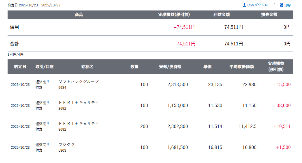 本日の実益:+74,511円となりました。