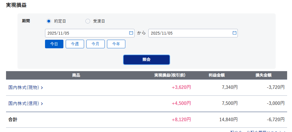 本日の実益:+8,120円