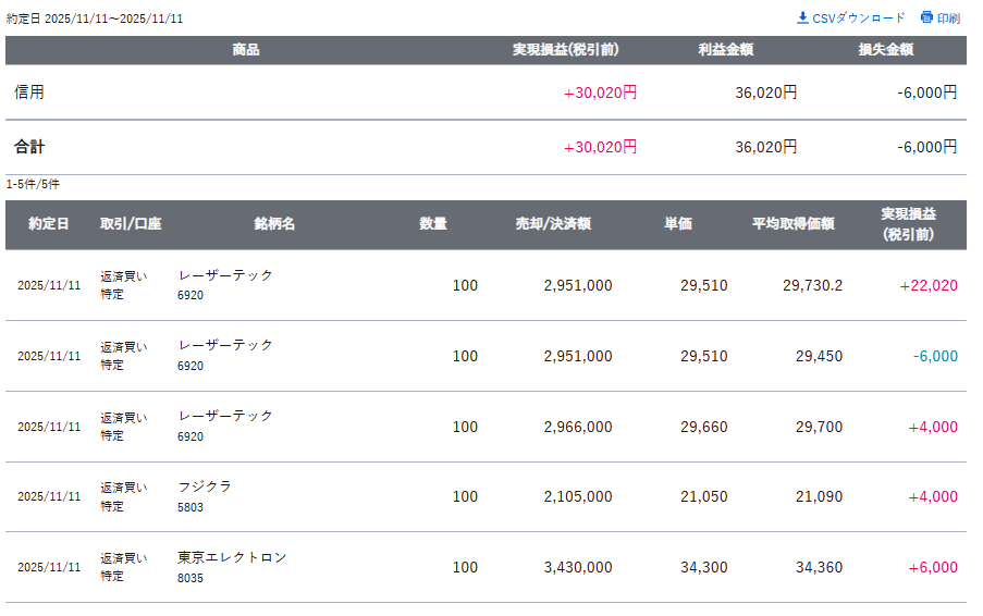 本日の実益 +30,020円