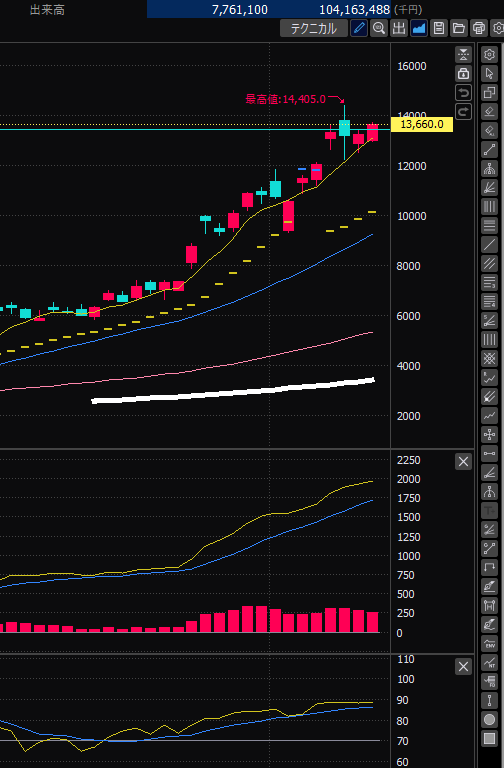 建設業関係の仕事をしているので、現場名でよく出てきますキオクシア。直接の取引はないので特別な情報は一切ないのですが、この強欲チャートが気にならないわけがありません。