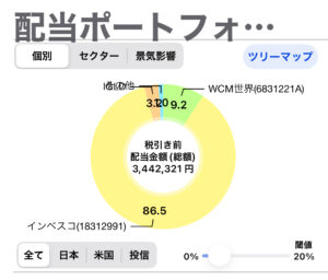 よって分配金のほとんどがインベスコです。月に28.6万円の分配金が入ってくる計算です。(配当アプリより)