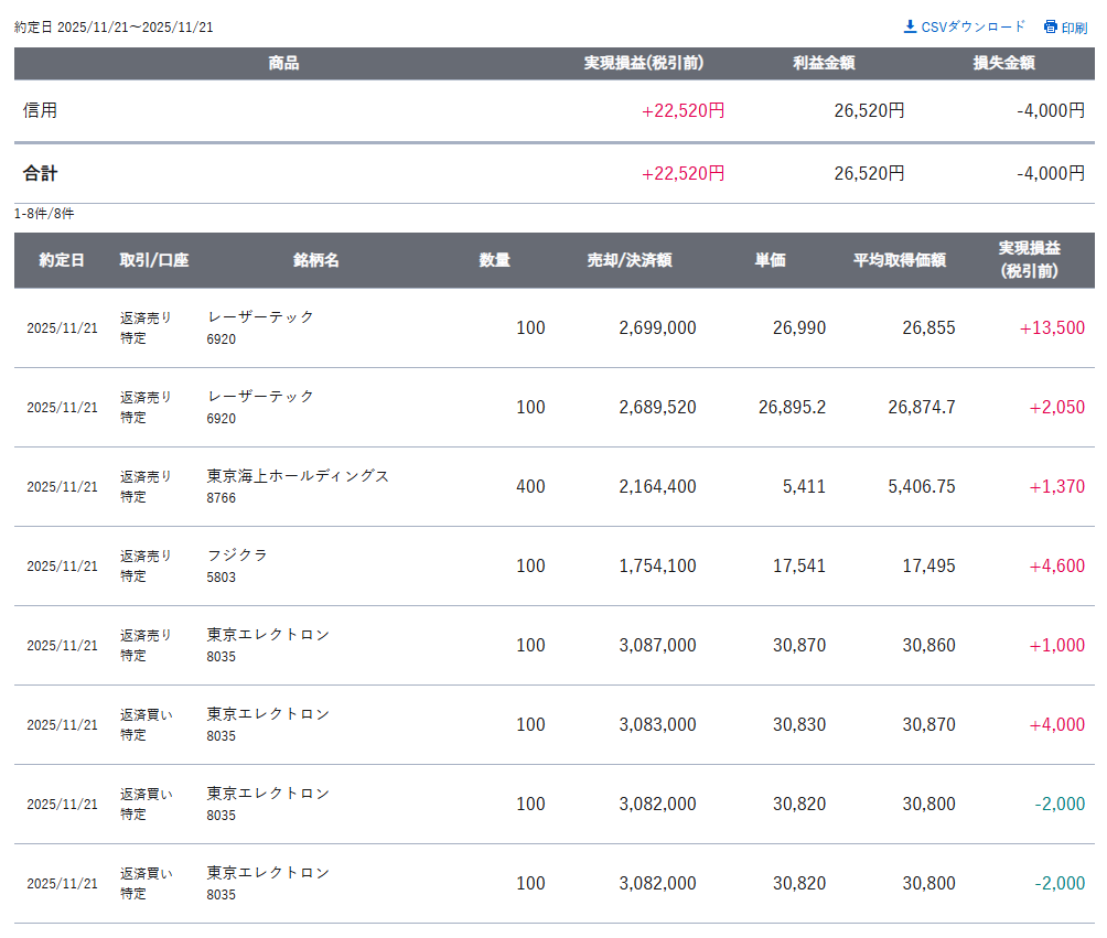 そこからレーザーテックやフジクラに入り、昨日仕込んだ東京海上を手じまいし、