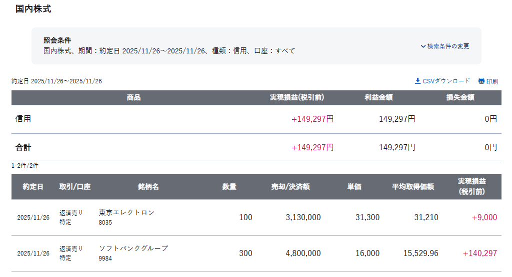 - 売り指いれておいたのが刺さり、寄り付き直後に約定。