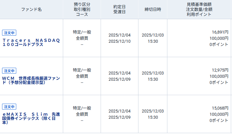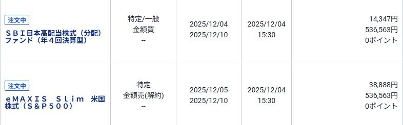 今日でいうと、slim500を536,563円、SBI高配当に振り替えました。