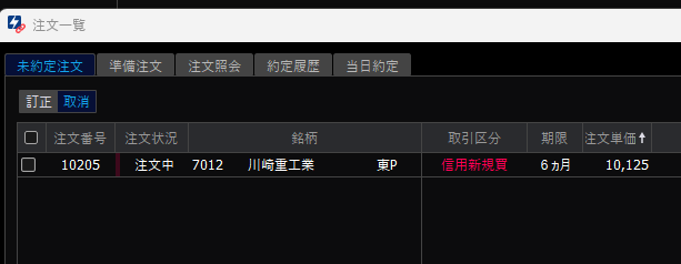 7012 川崎重工業を10,125円入りました。なぜ?日足は悪くなく、前日下げて終わっていたので、200SMA(分)までは簡単に戻すだろうなと。で、想定より高く(10,155円)で寄り付いたので、思ったより利益でませんでした。