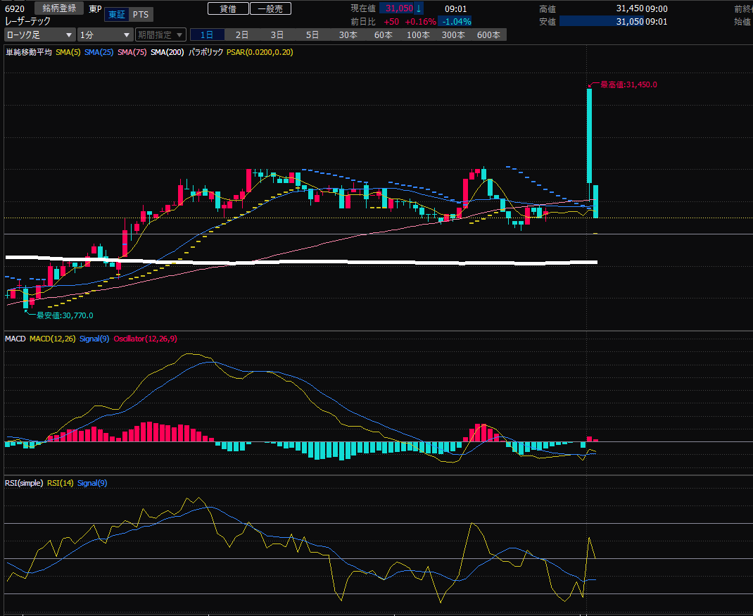 もふもふおはようございます。昨日、オラクル下落で連れ安になっていたレーザーテックを持ち越して、今日の寄り付きで手じまいしました。
