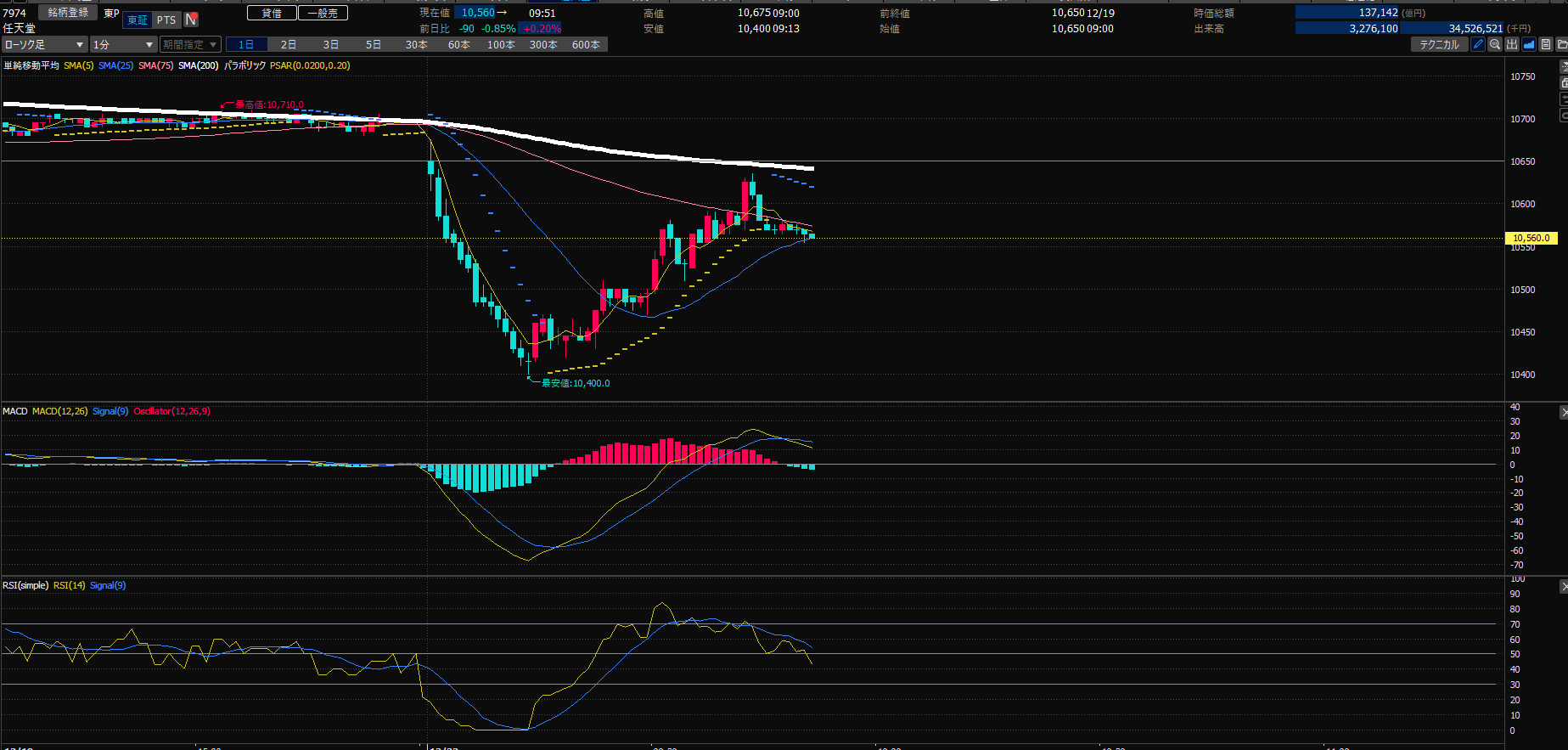 任天堂はおもいっきり下げていて、リバウンドするところだったので入りました。このまま10600円付近まで上げていくでしょうね。しらんけど。