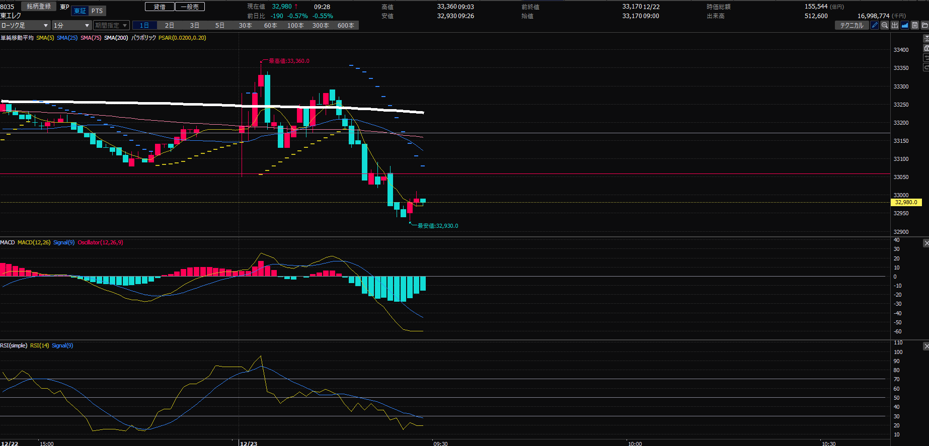 東京エレクトロン。こりゃ、やっちまったな。レーティング引き上げのニュースを耳にして、年末に向けて上がるのかな?の需給がまったく読めてません。(需給みてない)汗