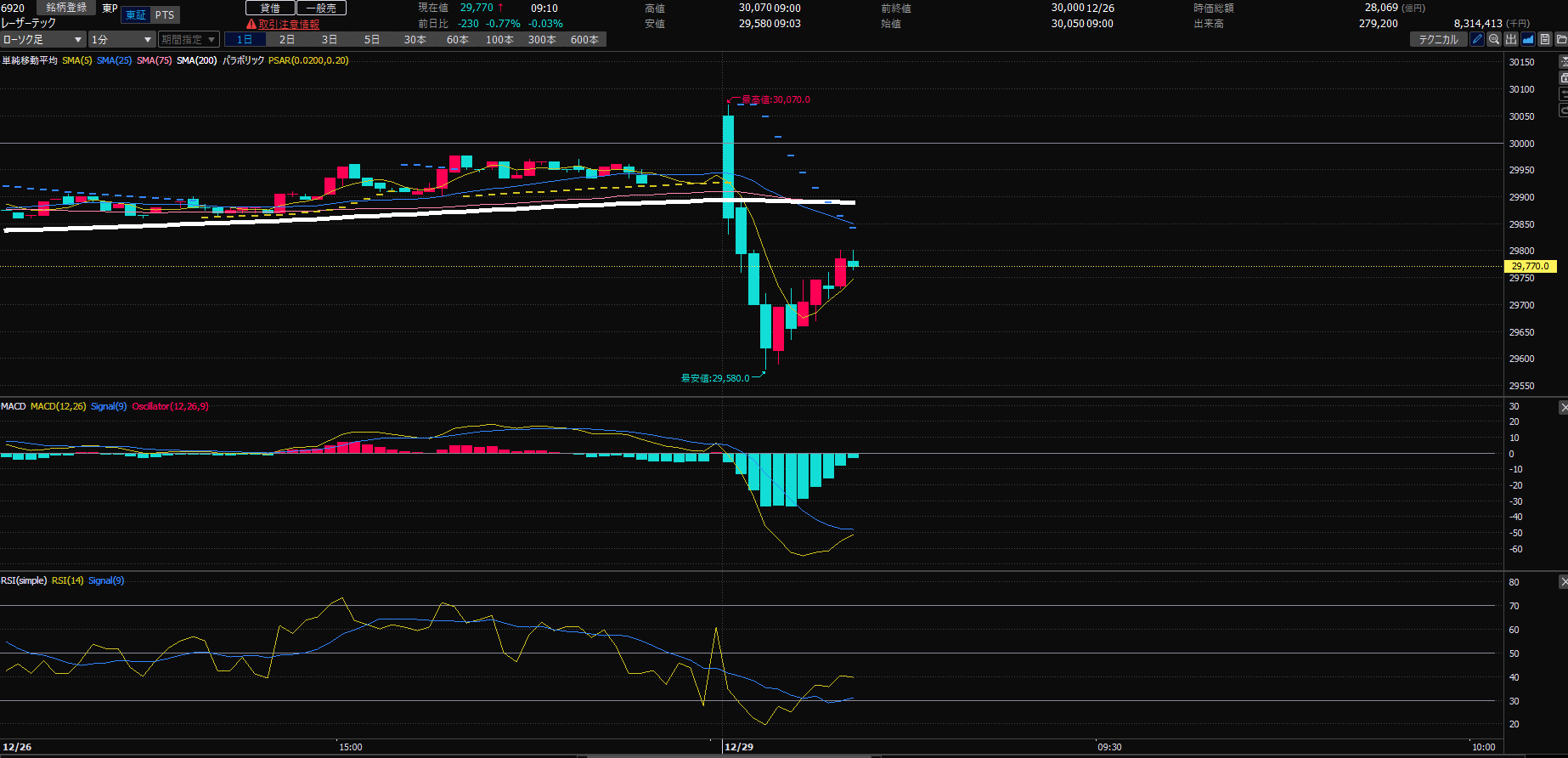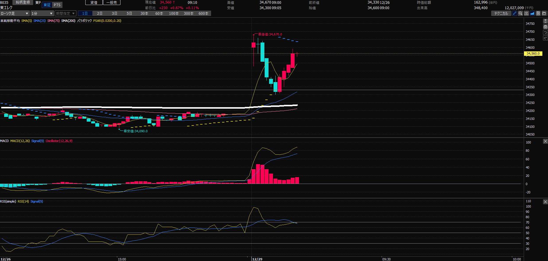 『東京エレクトロンを成行売』からスタートです!グンと上がったところから売られて、底値を付けてから来年に向けて上昇していく。そんなイメージを持ってます。