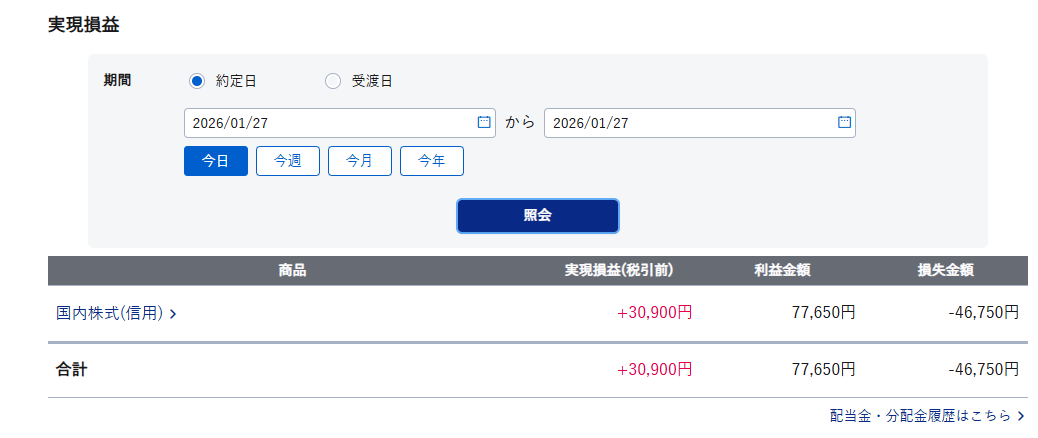 本日の実益:+30,900円