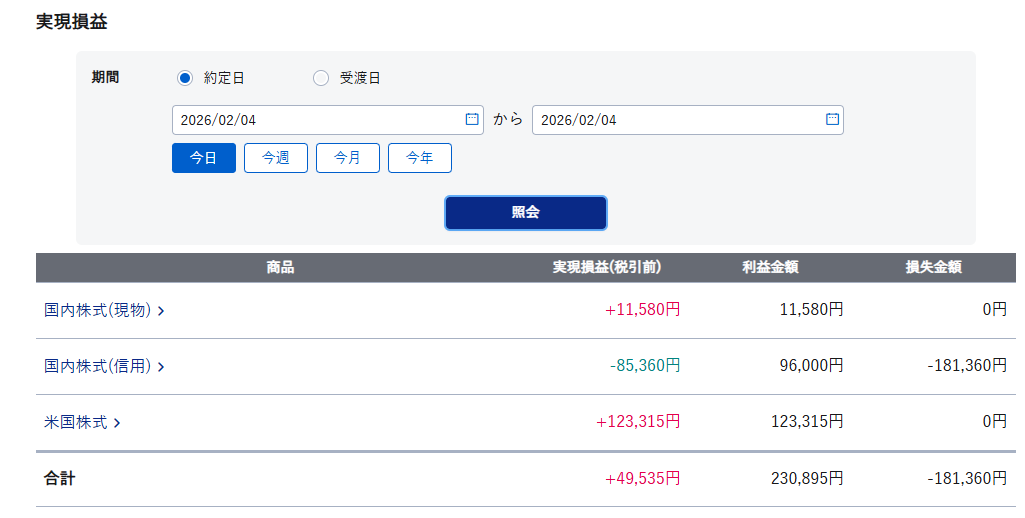 夜中にIGLDとSLVを利益確定した分で相殺され、プラス着地となりましたが負けは負けです。現物の利益は純金信託です。