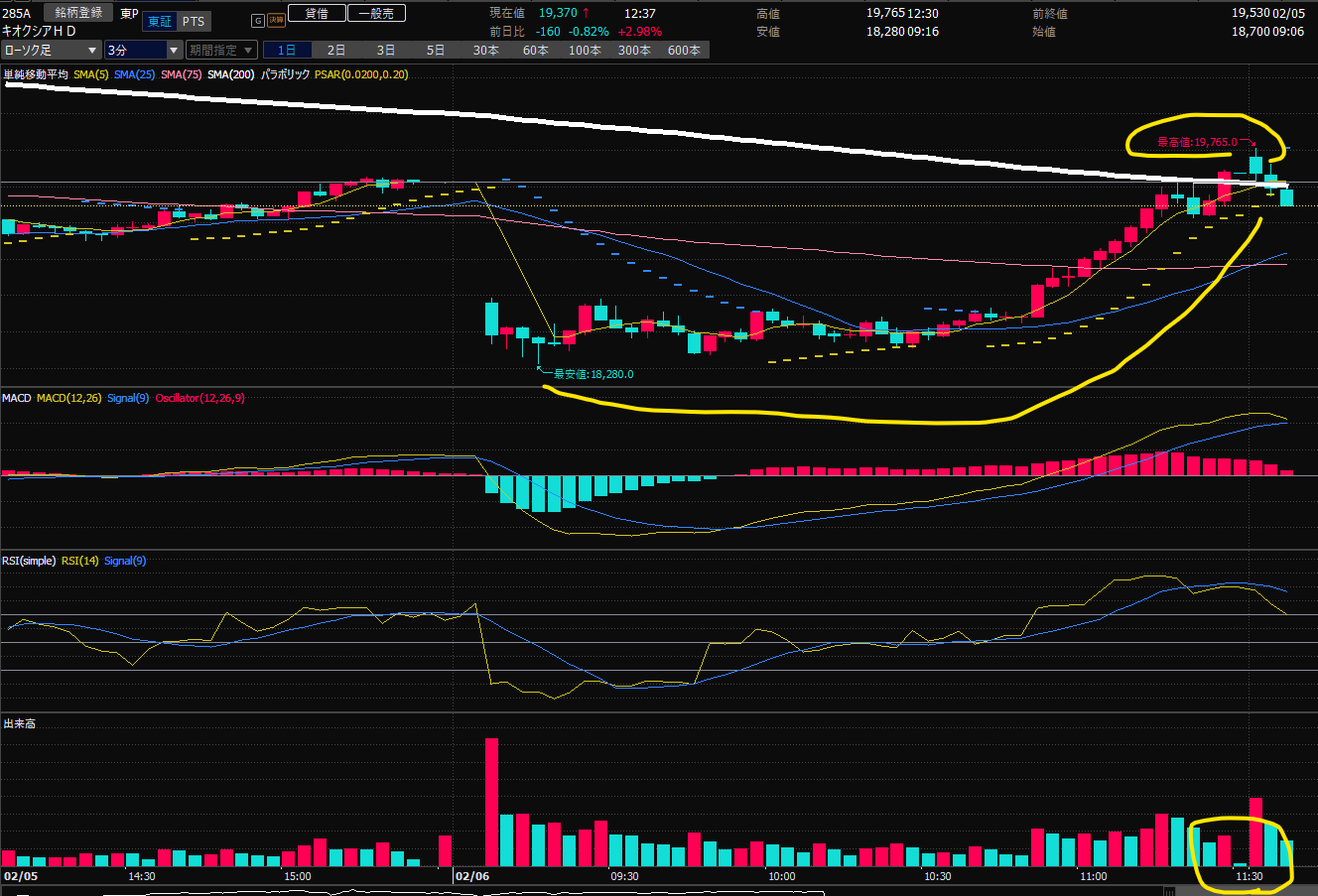 さあキオクシアくん。個人が売りまくったあと、そこからどんどん戻してください。明日利益確定の予定でいてますね。
