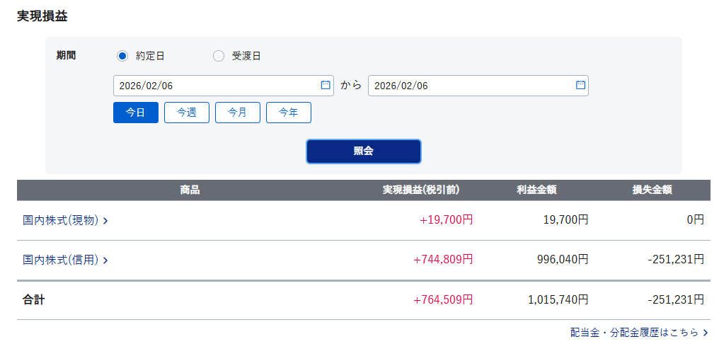 本日の実益:+764,509円