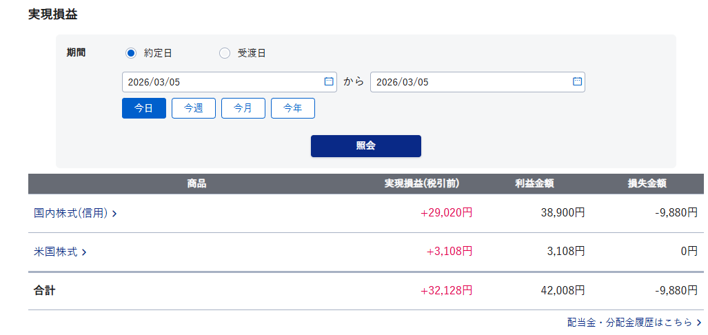 本日の実益:+32,128円