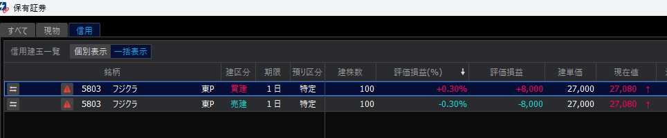 - フジクラは逆指値を入れておいたら刺さった