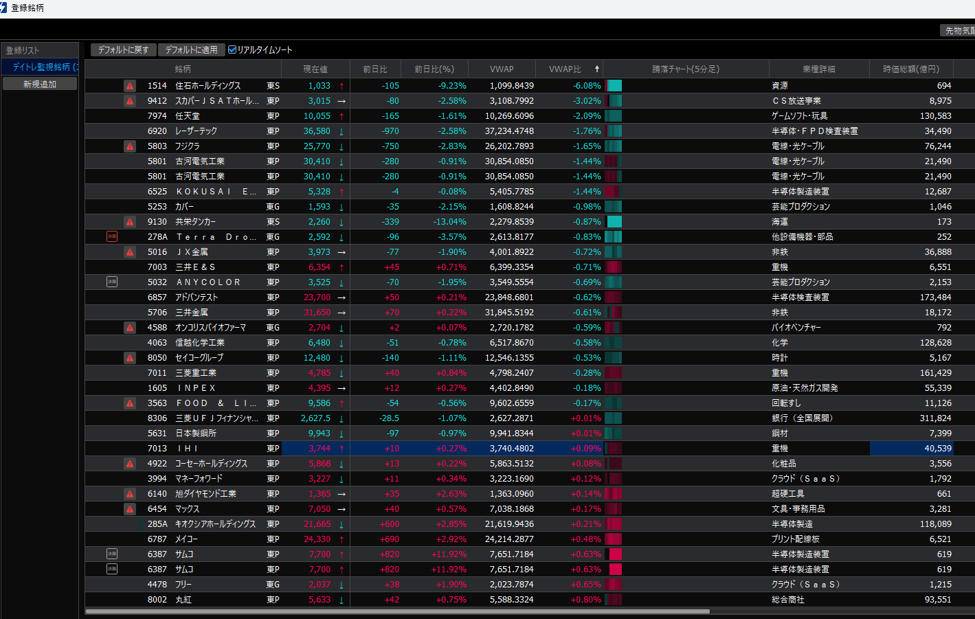 監視銘柄のリスト表示を試行錯誤