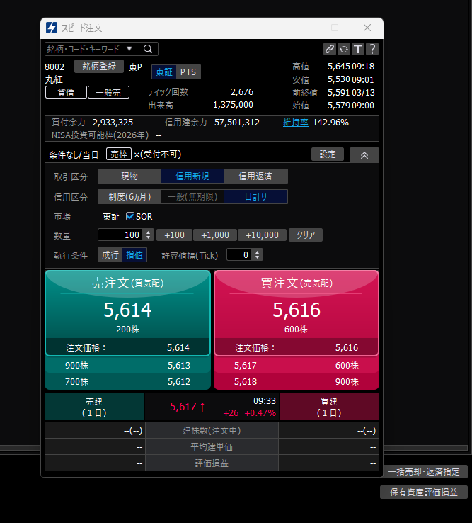 初めてみた。買注文をクリックしてみたけど動かない。ん??
