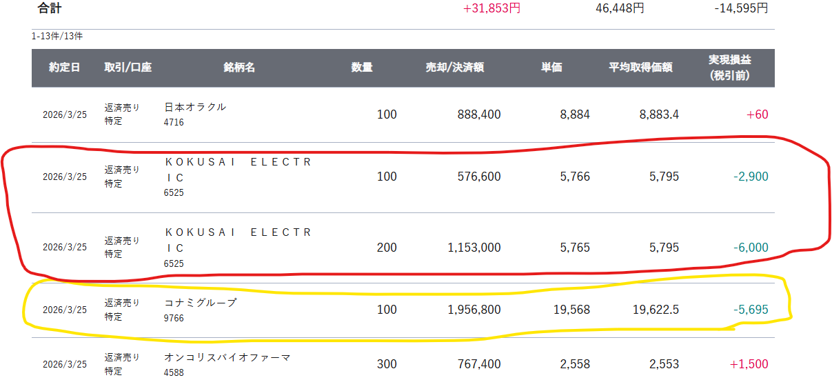 コナミも損切りしたので、実益が少し減ってしまいましたね。