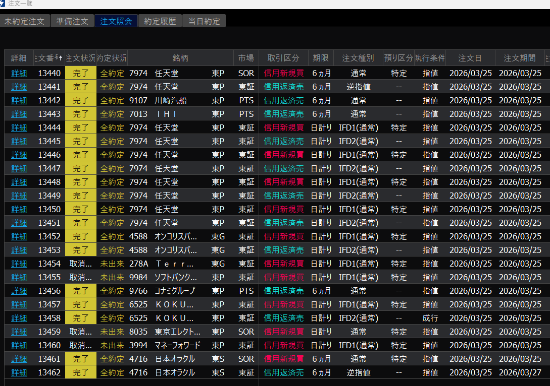 今日もIFDを織り交ぜ、日計りと6カ月を織り交ぜてのトレードとなりました。なぜ6カ月?当初は『デイトレは絶対に1日決済!』と息まいておりましたが、よく考えたらその思考に変えてから焦りが生じてトレード内容に支障を来しているのでは?という結論に至りまして。