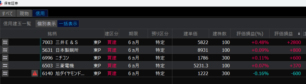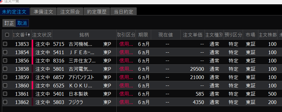 事前にチェックしておいた銘柄を寄り付きで注文しました。