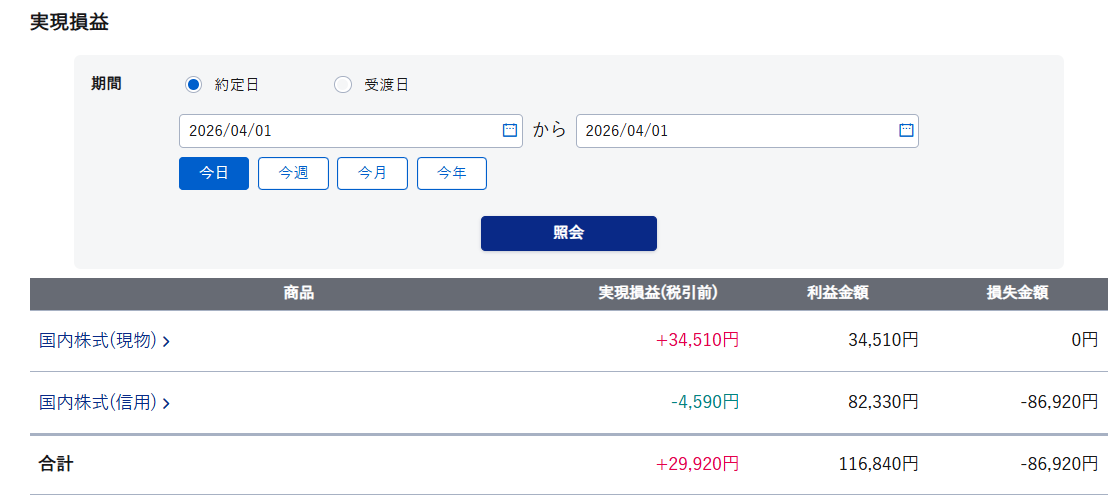 日経平均爆上げだったのに、私の利益は+29,920円。