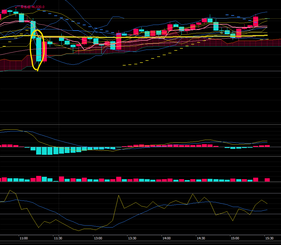 この陰線で、我慢でした。我慢、というか、逆指値を深めにいれて前場を終了(したと思います)。