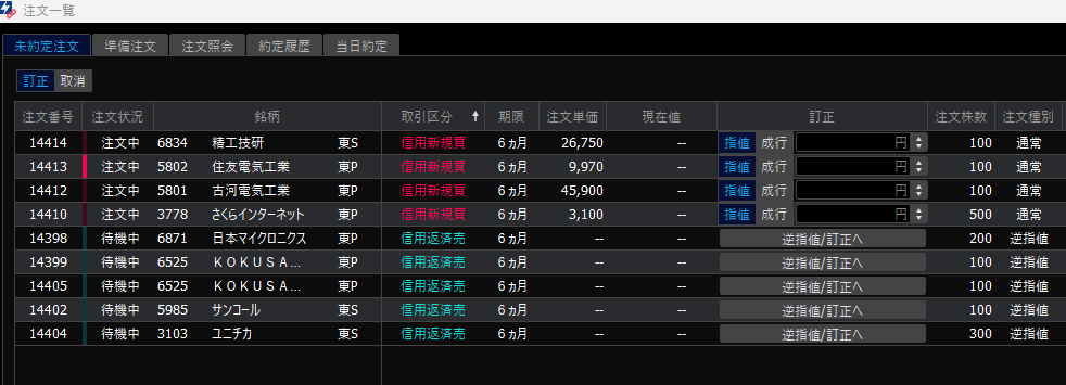 で、ちょっと指値を変えたりして寄り付きを迎えました。