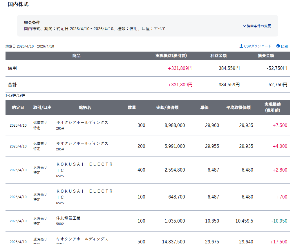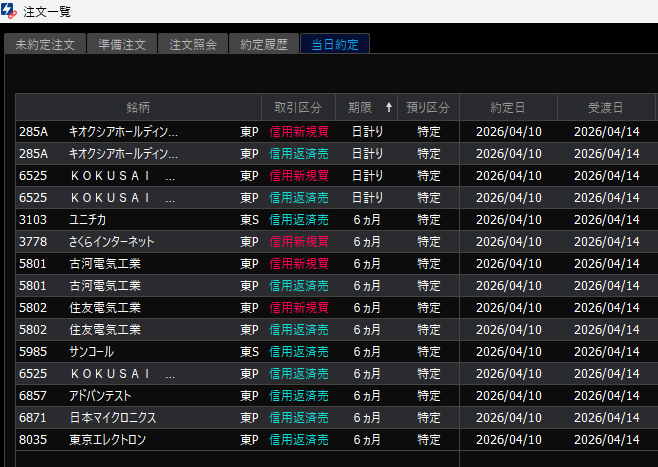 Xに投稿したあと、キオクシアとKOKUSAIのスキャで利益を重ねました。