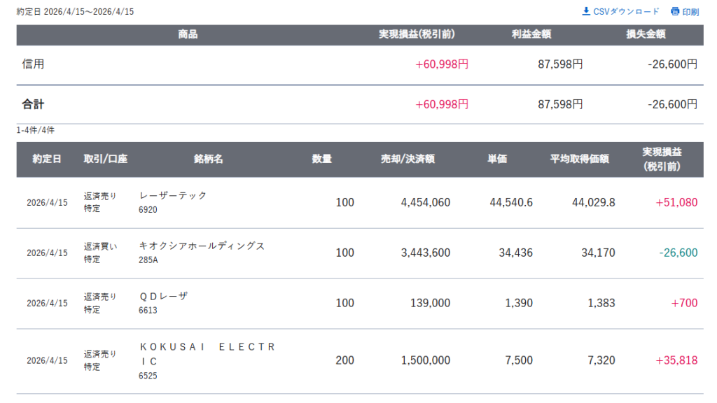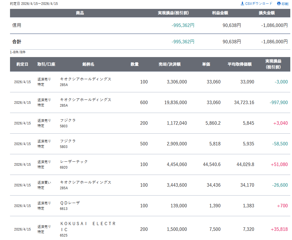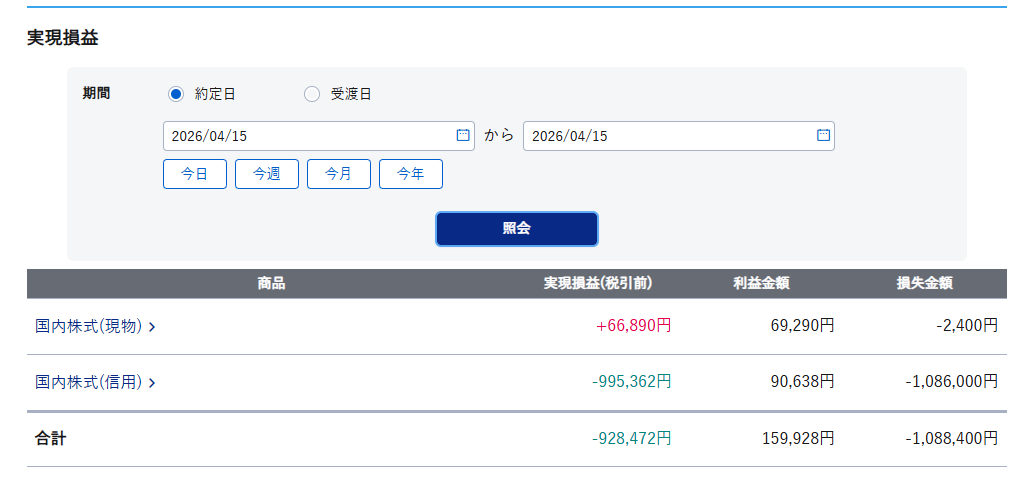 結果から先に申し上げると、大引け不成で約定し、▲928,472円(信用)でした。